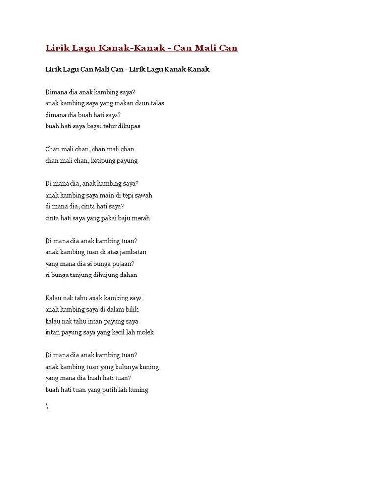 Lagu 17 bila kita berkumpul bila kita berkumpul berkumpul berkumpul bila kita berkumpul rasa gembira kawan ku kawan mu kawan mu kawan ku bila kita berkumpul rasa gembira. Lagu kanak- kanak kebiasaannya dicipta bagi memenuhi tema- tema tertentu dalam pengajaran pembelajaran. I ii iii bermain bulu kambing kepada kanak-kanak.